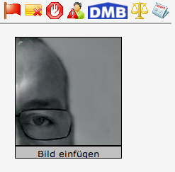 ![]() | So kann man am DMB-Logo auf einen Blick erkennen, dass es sich um ein Mitglied handelt, das Zeitungssymbol zeigt an, dass ein Abonnement der Mieterzeitung aktiv ist , die weiße Hand zeigt an, dass eine Aufnahmesperre eingetragen wurde usw. Fährt man mit dem Mauszeiger über das jeweilige Icon, wird eine Beschreibung eingeblendet. |